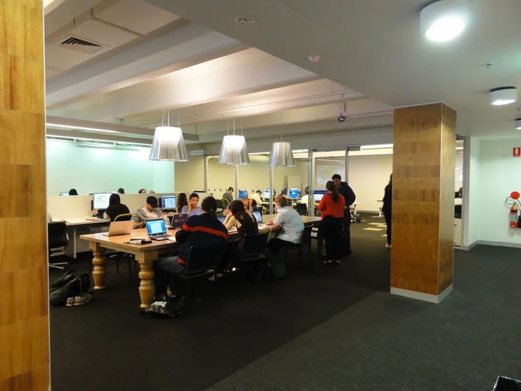 - In Sachen Equipment ist die Uni aber echt gut aufgestellt. Im ICT-Building, wo ich viele meiner Vorlesungen haben, gibt es separate Arbeitsräume für Bachelor-Studenten, für Master-Studenten, für Honours, für Researcher und so weiter. Es gibt Arbeitsräume mit einem Projektor und fast alle der Computer dort sind Macs(!). Bestimmte Arbeitsräume kann man auch online buchen! (sehr cool). Generell werden bei einer Vorlesung die Präsentationsfolien nicht auf einer Fläche sondern auf 2 Flächen geworfen. Und: Normalerweise wird jede Vorlesung aufgenommen, die Uni verwendet ein einheitliches System, das „Lectopia“ heißt.