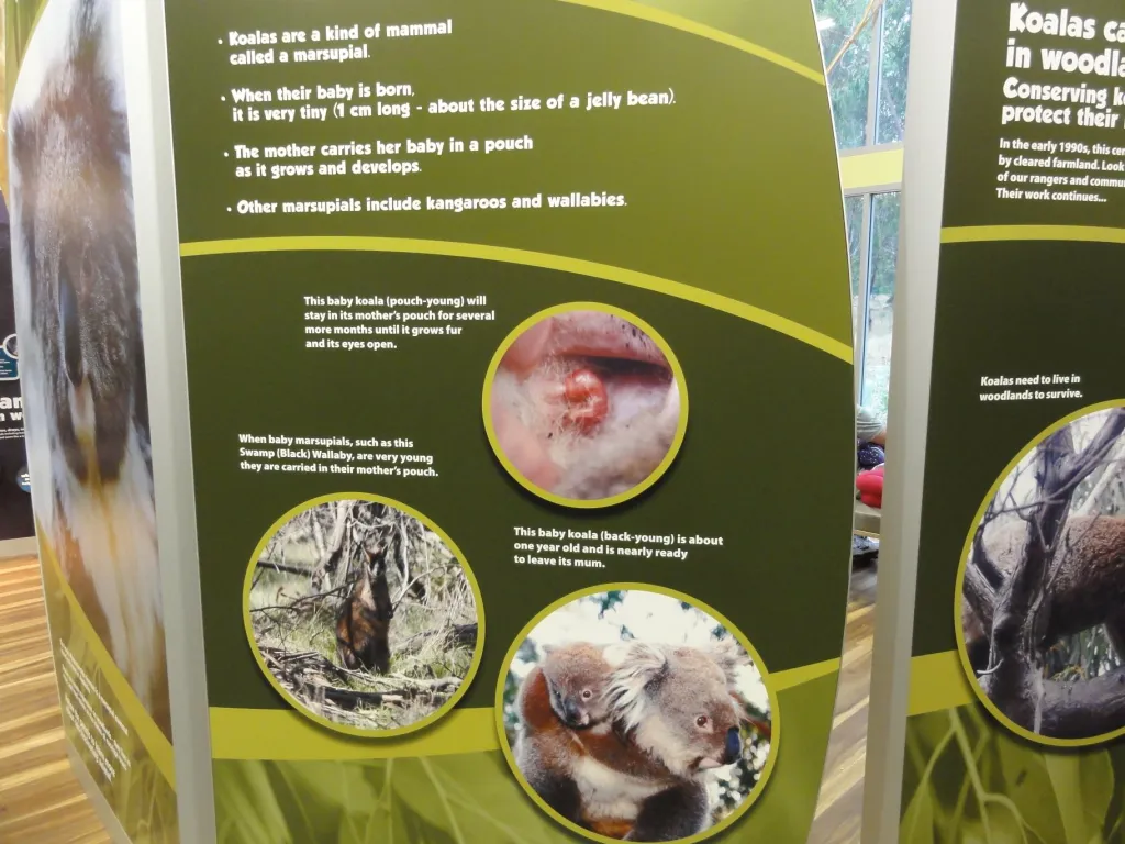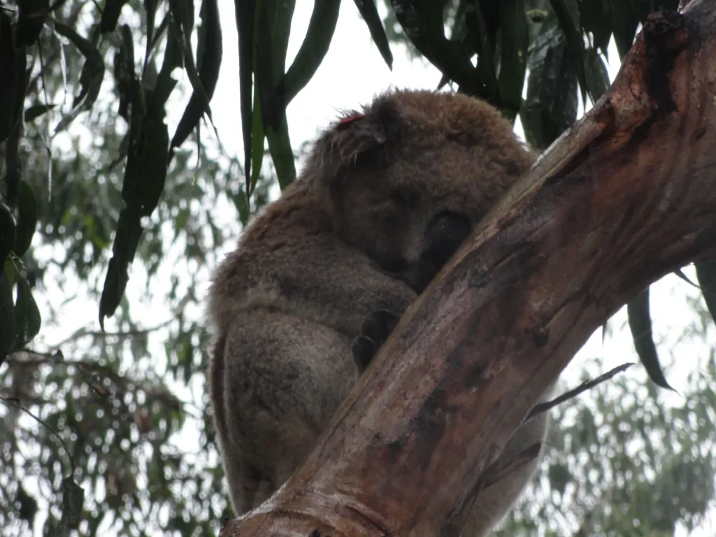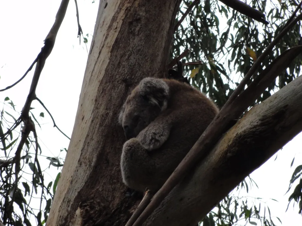 Danach sind wir zum Koala Conservation Centre gefahren, einer Aufzuchtstation für Koalas. Leider hat es dann auch schon angefangen zu regnen (und das nicht zu wenig). Wegen des schlechten Wetters konnte wir nur wenige Koalas sehen. Und die, die wir sehen konnten, haben sich meistens zusammengerollt, um sich vor dem Regen zu schützen. An einem sonnigen Tag hätte man die Koalas beim Futtern zu sehen können. Übrigens: Koalas schlafen so um die 20 Stunden pro Tag! Und Koalas-Babys sind nach der Geburt so groß wie ein Jelly Bean (diese Süßigkeiten meine ich damit).