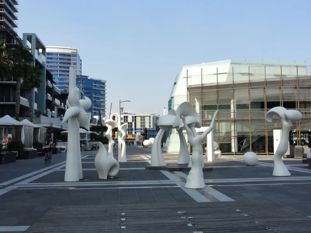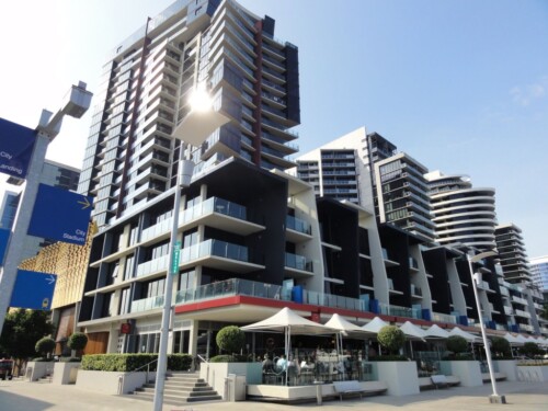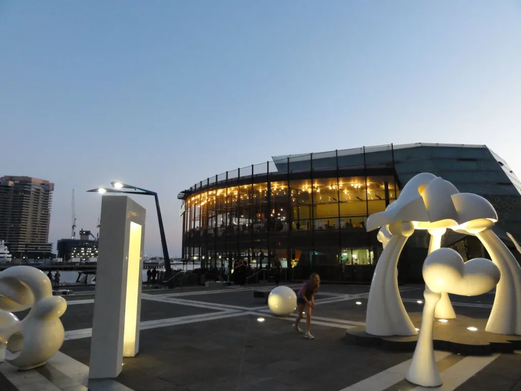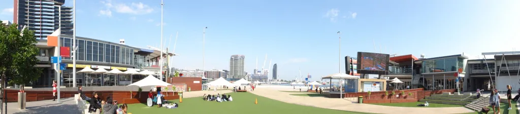 Im Rahmen meiner Erkundungstour in Melbourne bin ich mal zu den Docklands gefahren, die westlich vom CBD liegen. Das ist ein schönes Gebiet am Victoria Hafen entlang des Yarra Rivers. Hier findet man viele teure Jachten und einen Einkaufszentrum (Harbour City). Es gibt hier am Hafen auch einen öffentlichen Platz mit einer künstlichen Wiese und einen Riesenbildschirm, wo z.B. auch Fußballspiele gezeigt werden. An einem schönen warmen Tag kann man sich hier wirklich entspannen. An dem Tag, wo ich da war, fand zur gleichen Zeit die L’Oréal Melbourne Fashion Festival statt. War leider nicht am Runway, weil man dafür Karten kaufen musste.