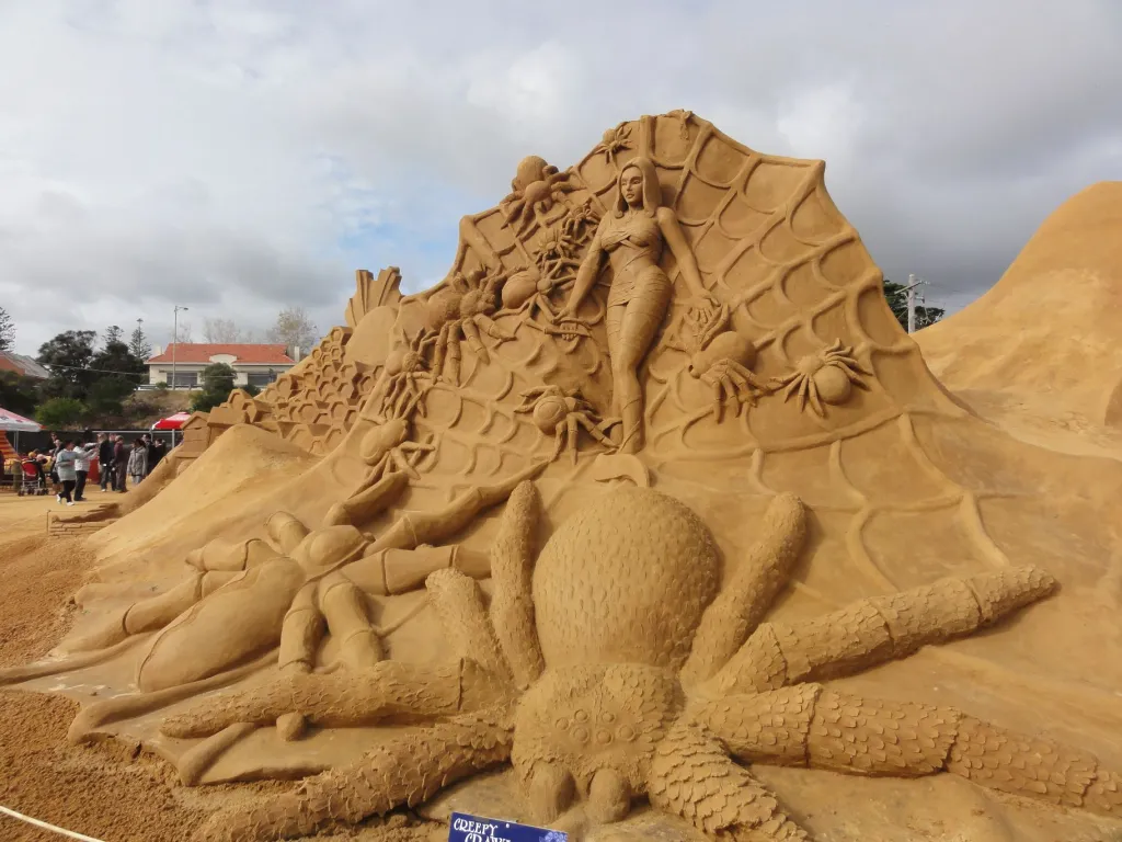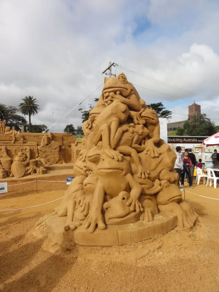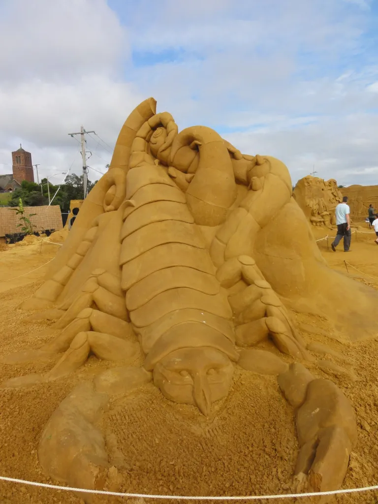 Bei uns haben wir gerade Easter Break (Ostern) und ganz Australien ist wegen den Ferien unterwegs. Ich bin mal nach Frankston gefahren, das ca. 1 Stunde mit dem Zug südlich von Melbourne zu erreichen ist. Dort habe ich die Sand Sculpting Exhibition besucht mit echt coolen Sandskulpturen. Thema im diesem Jahr war „Creepy Crawlies“, also Spinnen, Skorpione etc. Die Exhibition ist leider etwas klein, für die Kids gabs noch kostenlose Workshops und Ostereiersuche.