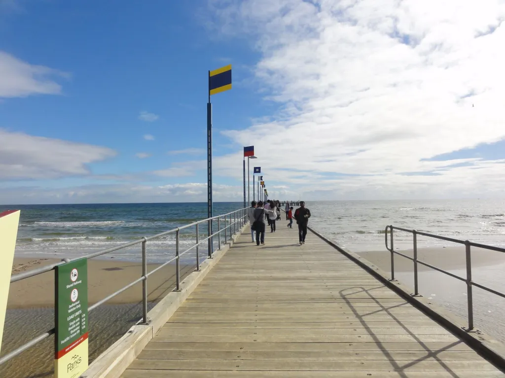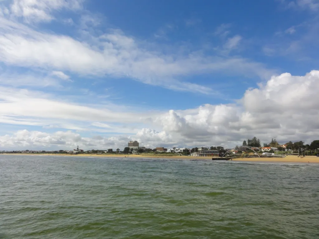Danach war ich am Frankston Beach, einem der schönsten Strände, die ich hier in Melbourne bisher gesehen habe. Ich habe übrigens vergessen zu erzählen, dass das Wetter in Melbourne unberechbar ist. Die Einwohner sprechen auch vom „4 seasons a day“, also an einem Tag kann man alles Mögliche haben, von Sonnenschein und Hitze bis starkem Regen und Wind. Habe das auch schon paar Mal hier erlebt.
