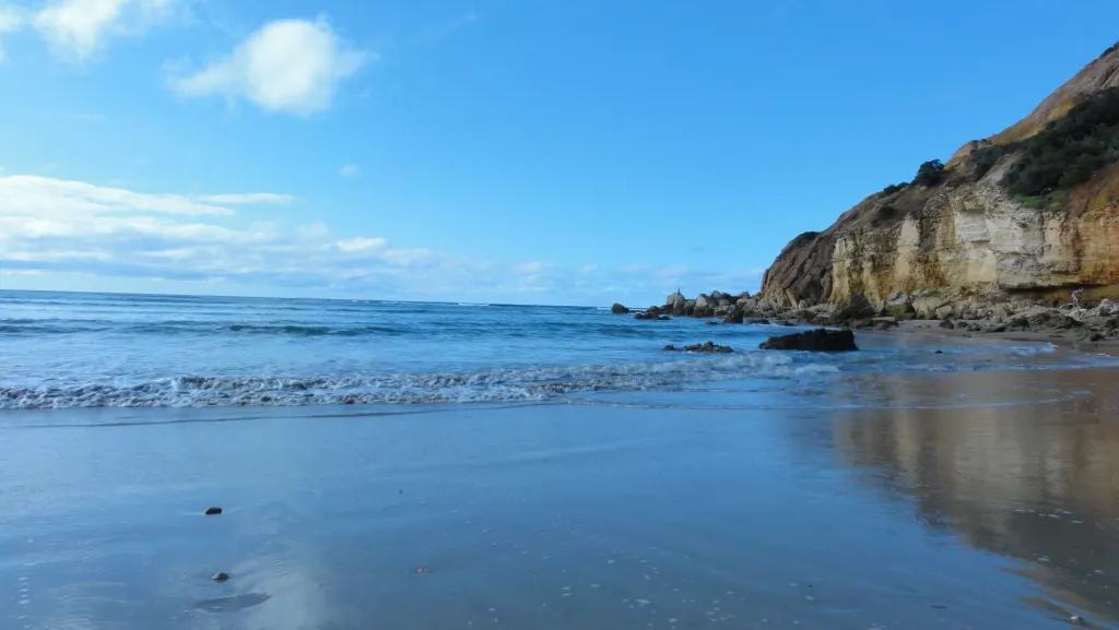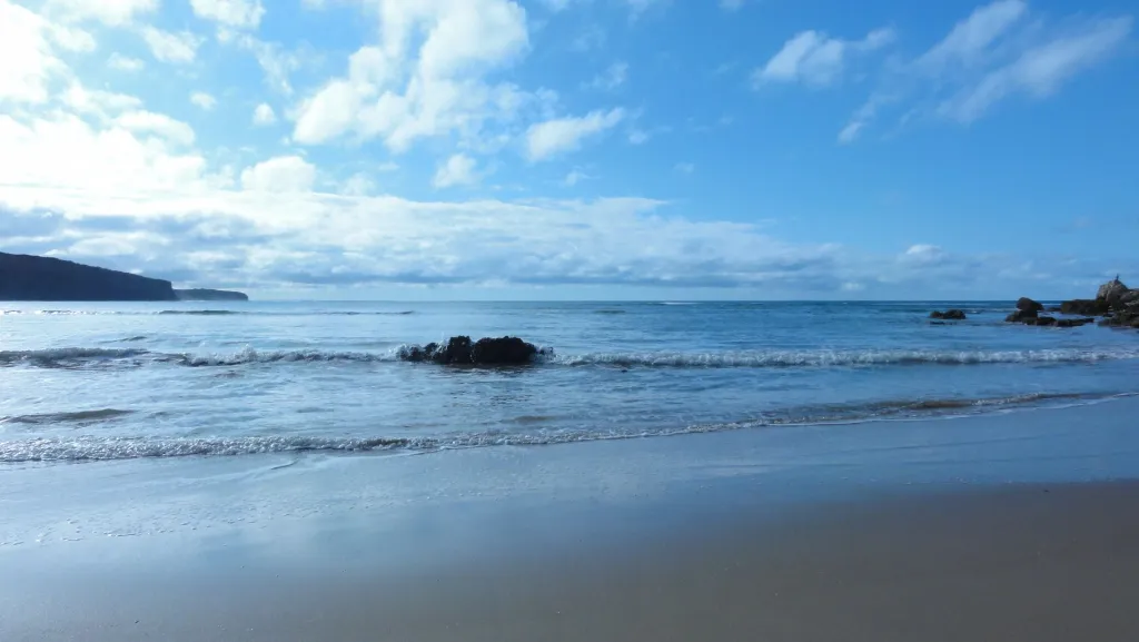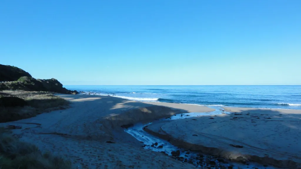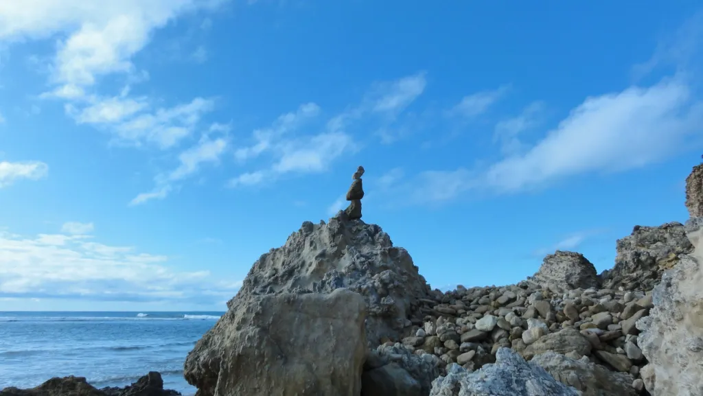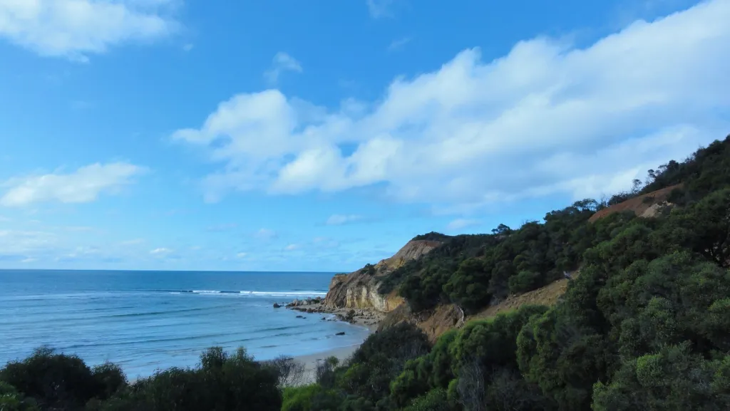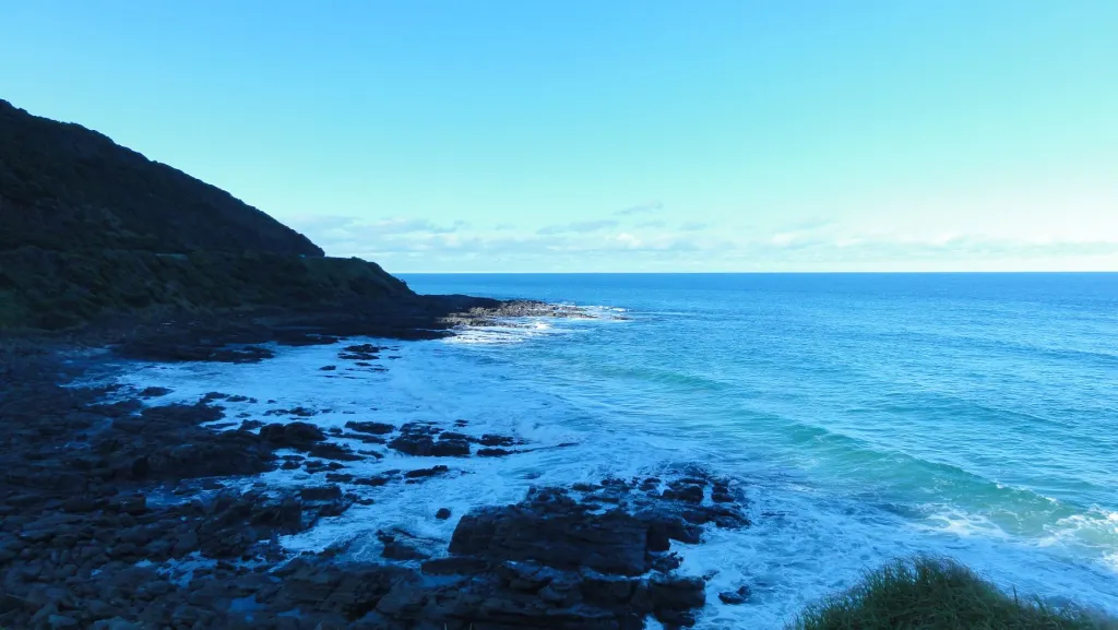 - Point Addis: Unser erster Stopp war am Point Addis. Leider war es noch etwas zu bewölkt, aber die ersten Sonnenstrahlen waren schon da. Da gab es sogar eine Art Skulptur aus drei Steinblöcken auf einem großen Felsen.